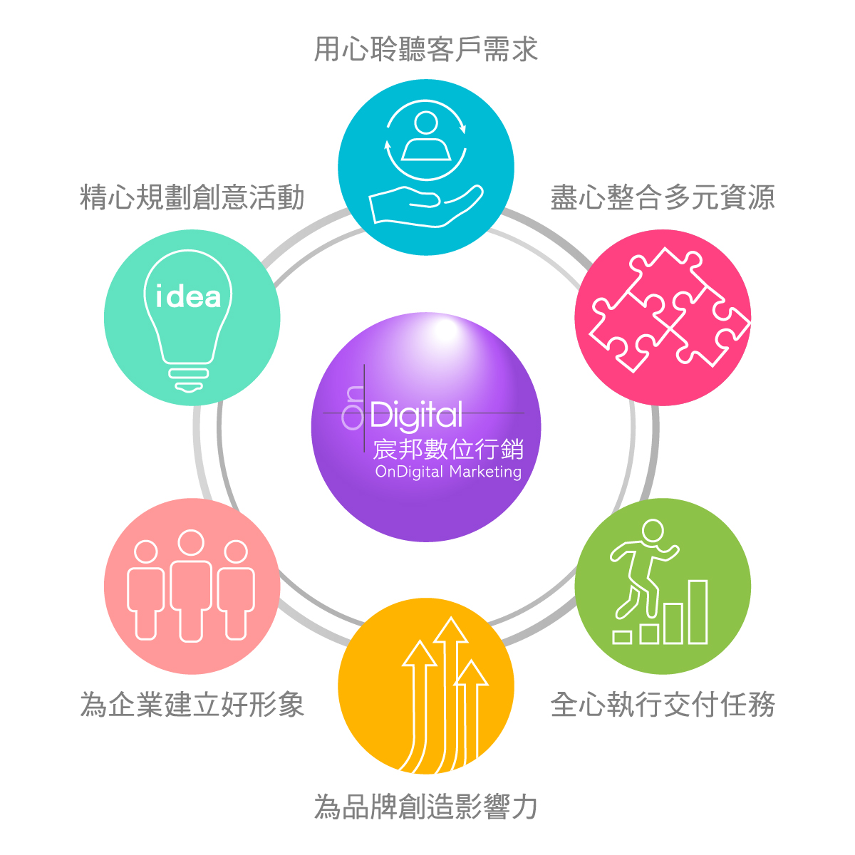 數位化已為行銷傳播激盪出另一波新浪潮,「數位影響力」更是締造了「全方位整合行銷傳播服務」時代。 除了既有之專業諮詢、媒體關係、文案撰寫、公關活動之外,宸邦亦從網路媒體監看開始,即時傾聽網路影響者意見,從中協助客戶找出不同領域中之網路影響者,進而與他們產生連結關係,使其成為品牌愛好者,甚至願意主動推薦及介紹產品、服務、傳播話題等。 透過加乘效果之網路公關操作,訊息不僅可以在虛擬網路上發酵,亦可帶動熱潮至實體世界中,有效協助客戶達成宣導及銷售目標。